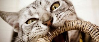 When purchasing a kitten, you need to ask the breeder what food the animal is accustomed to. Using this food, you can gradually switch to the desired mode. Up to four months, the kitten should eat at least four times a day, after 8 months - twice. If the animal receives natural food, it should include fermented milk products, offal, and lean meat. Do not give cream or natural milk. The former have a high fat content, and the latter is not absorbed by the body of an adult cat. Suitable by-products include chicken gizzards, hearts, and beef liver. Meat – chicken, veal, turkey, rabbit. Pork has a high fat content and can lead to excess weight gain.