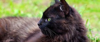 - the fur is pure black. The eyes are only golden. Nose – black, paw pads – gray or black;