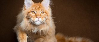The Maine Coon is a large-sized native American breed. The ears are decorated with tassels, the neck is decorated with a lush collar.
