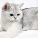 The British cat has thick, pleasant to the touch fur, reminiscent of plush; white cats of this breed do not like to sit on laps; tendency to obesity; good health.