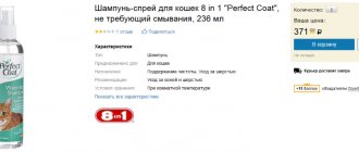 Review “I periodically buy anti-flea products for my cat, but most often I opt for shampoo. I like that it's fast and efficient. In addition, after it the wool becomes very soft and does not mat. Our “favorite” shampoo has a very pleasant aroma, which is also a plus. But I don’t like various collars because of the unpleasant smell.” Tamara, Podolsk