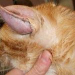 When a cat scratches its ear, it cannot be ruled out that this is a serious disease, which is dangerous because a pathogenic environment is formed around the location of the lesion, favorable for infection with other infections. May cause hearing loss in the animal. It is quite difficult to diagnose on your own, but it is possible that very dark sulfur is accumulating inside the sink, which has an unpleasant odor.
