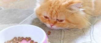 - cats are fed the simplest and cheapest food (if it is ready-made economy class food, then it contains only bone meal, preservatives and dyes, and if it is natural food, then it is porridge and pasta, cooked at best with the addition of five tiny fish or three chicken heads per bucket);