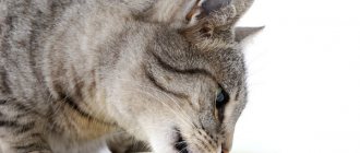 - Parasites. There are external and internal parasites. External parasites cause great discomfort to cats; they begin to itch frequently and severely. Such parasites are mainly found on the neck and stomach of the animal. They pose a great danger; through their bites they infect the animal with internal parasites - worms. Therefore, to begin with, veterinarians recommend removing external parasites; this can be done using special bathing products, and then begin removing worms. Just don’t delay treatment, this disease can be fatal for the animal. Read more in the articles: Worms in cats: causes, symptoms, treatment, prevention. What blood-sucking insects and parasites can live on a cat’s body?