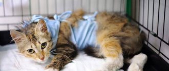 The cat rarely takes this kind of manipulation calmly and, when applying a bandage, tries in every possible way to get rid of it. In this case, the owner should purchase a special collar that prevents the animal’s increased interest in the injured part of the body.