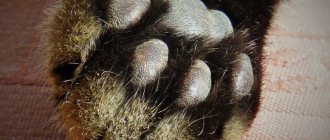 - Stinging insect bite - just like in humans, when a cat is struck by a wasp or bee, a local increase in temperature occurs in the affected area. The paws are most often affected, causing them to become hot and swollen. Treatment is aimed at relieving swelling and allergic reactions, as well as disinfecting the wound. If there is no acute general allergy, the prognosis for the pet is favorable. A sign that just such a “disease” is occurring is a visible bite site. A veterinarian can easily diagnose such a problem;