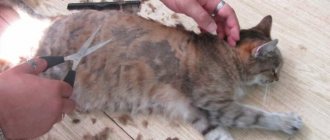 - Волос кошки срезается по направлению его роста. Это несколько удлиняет процедуру, но вызывает наименьший дискомфорт у питомца.