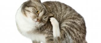 - Зафиксировать кошку и сделать пальцами левой руки складку на её шее.
